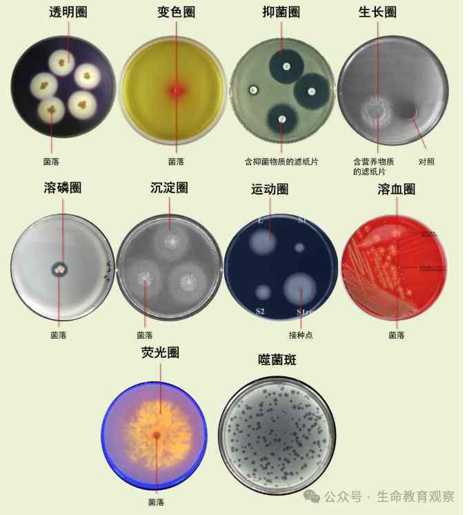 这些“特征圈”不仅是微生物分类鉴定的依据,也为疾病诊断和生物防治提供了重要线索。例如,溶血圈的形态可区分链球菌的致病性,噬菌斑的大小和形态可用于噬菌体效价测定。