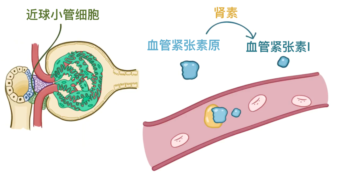 肾素是一种进入血浆的酶,它的主要底物是由肝脏产生并始终存在于血液中的血管紧张素原。当肾素与血管紧张素原结合时,会切除血管紧张素原的大部分蛋白结构,留下一个小片段,称为血管紧张素I。