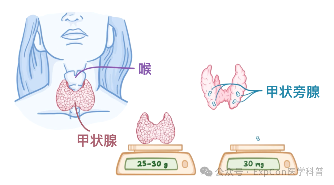 甲状旁腺由四个小的卵圆形腺体组成,每个约30毫克,位于甲状腺的后表面。它们主要分泌甲状旁腺激素,简称PTH。