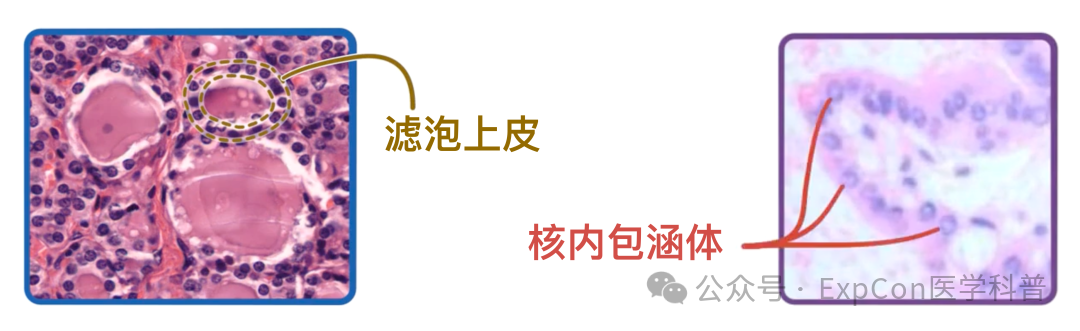 这些细胞的核学特征尤为重要,因为在诊断乳头状甲状腺癌时,主要就是依靠观察核的形态。