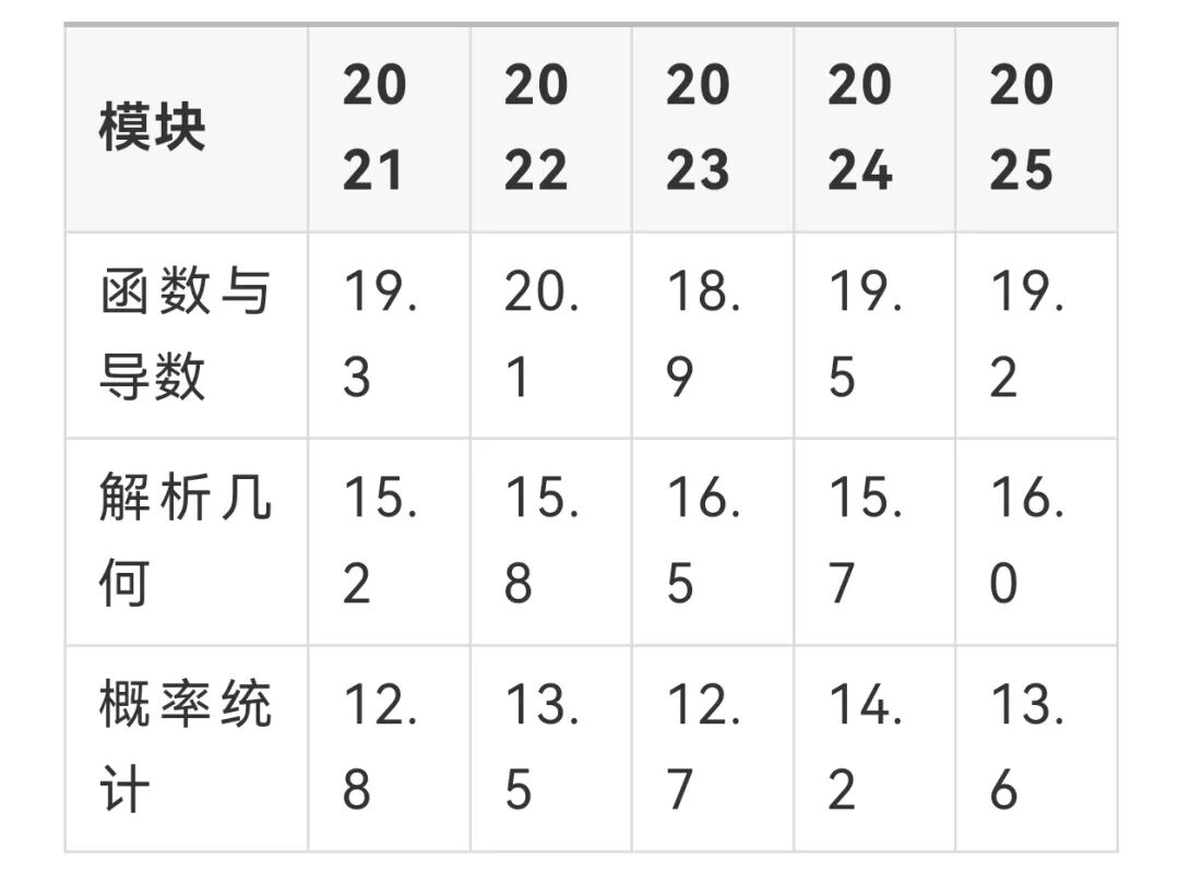 表:2020-2025年数学核心模块分值占比稳定性(%)