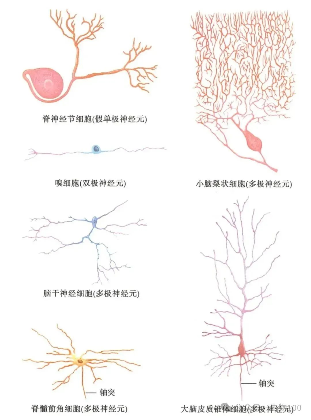 神经元是神经系统的基本功能单位,负责接收、处理和传递信息。根据形态和功能特征,神经元可以分为多种类型,以下是六种常见的神经元类型。
