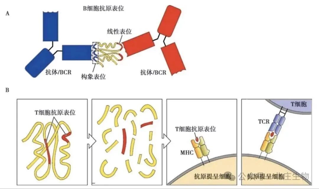 通常由5-15个氨基酸残基或糖基组成。分为构象表位(依赖空间结构,B细胞主要识别)和顺序表位(线性序列,T细胞主要识别)。