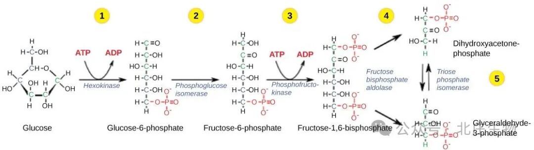 1,3-二磷酸甘油酸 + ADP → 3-磷酸甘油酸 + ATP(磷酸甘油酸激酶催化);磷酸烯醇式丙酮酸(PEP) + ADP → 丙酮酸 + ATP(丙酮酸激酶催化)。