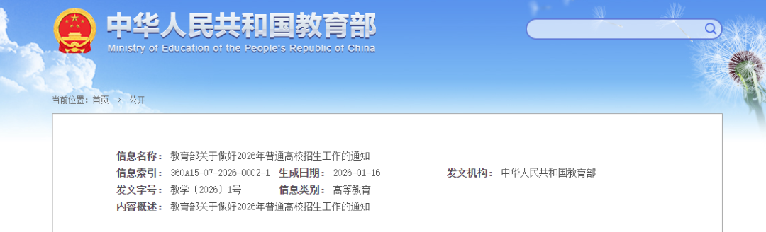近期,教育部发布了2026年一号文件——《教育部关于做好2026年普通高校招生工作的通知》,让我感觉到高考本身的大逻辑正在发生变化,以下是一些思考: