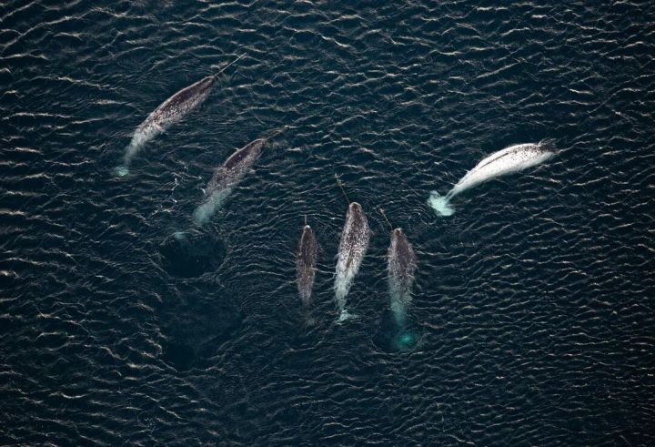 围在一块儿的独角鲸