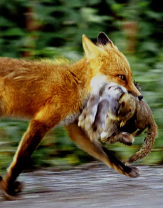 赤狐嘴里叼着许多的猎物