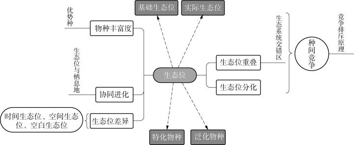 | 2023年1月浙江卷第13题 | 太平洋某岛上的蜗牛物种 | 生态位重叠;生态位分化 |