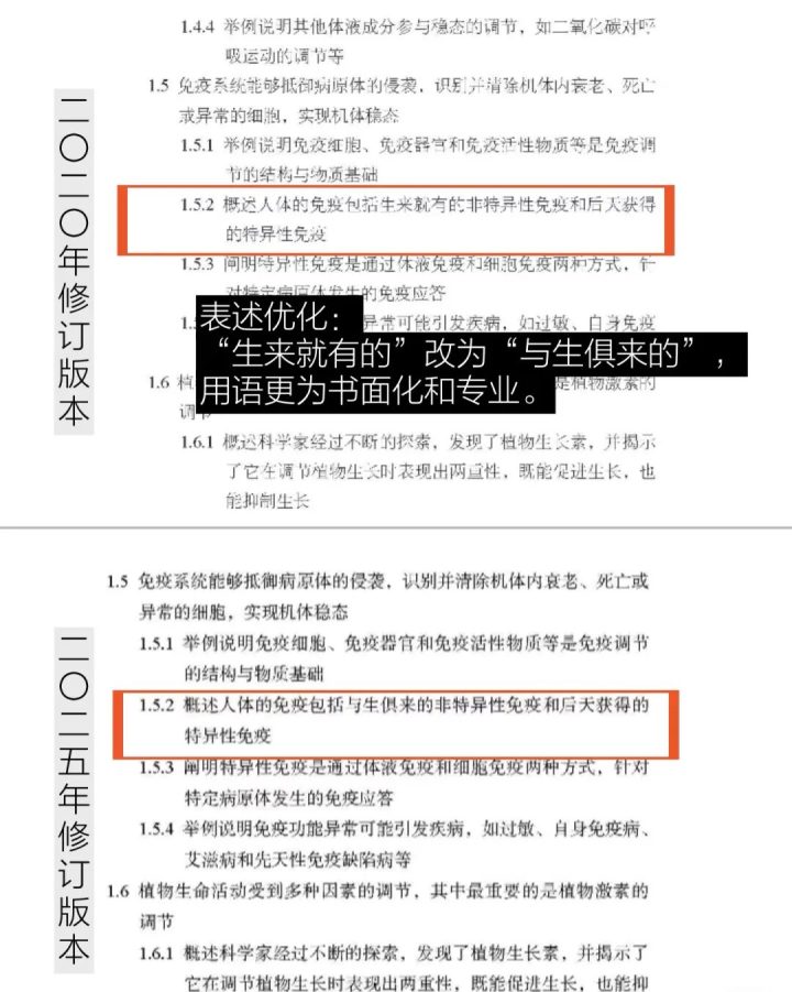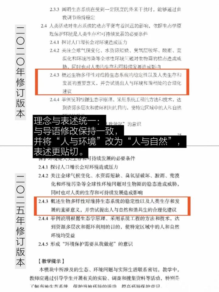 生物学课程标准2025修订更详细细节对比