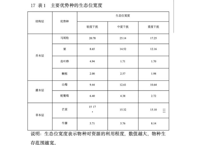 联系本文:这正是中度干扰学说中“干扰抑制优势种、为更多物种提供生存空间”的体现,生态位变宽本质是物种在干扰下获得了更广阔的资源利用空间。