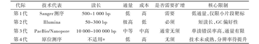 *注:第4代技术侧重空间原位检测,读长非主要指标